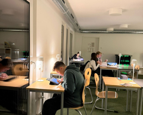 Dank unserer neuen Lampen, die flexibel einsetzbar sind, sind die ersten Arbeitsplätze individuell und hochwertig beleuchtet. Das warme, angenehme Licht schafft nicht nur optimale Arbeitsbedingungen, sondern auch eine besondere Atmosphäre: ruhig, konzentriert und zugleich gemütlich. Die Lampen sind damit weit mehr als funktionale Lichtquellen – sie sind kleine, aber wirkungsvolle Elemente einer Lernumgebung, in der man sich gerne aufhält.